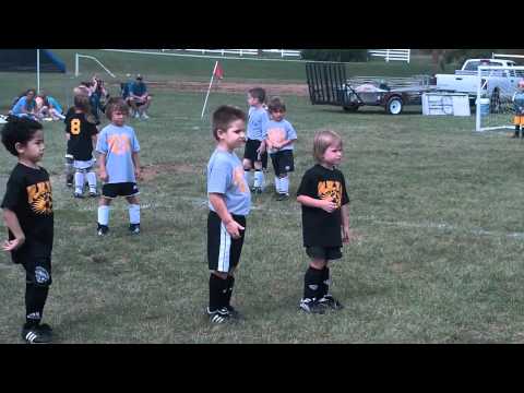 The moments of great individual play that we managed to get on video speak for themselves so I won't summarize the whole thing but I do want to point at a few moments that really stand out for me. Obviously you can't miss the amazing delicacy of Sam E.'s touch on the ball and the way he combines that with a nearly perfect awareness of where he is on the field and a brilliant imagination for finding a way to the goal but at 0:40 in the video while you see Sam playing the ball confidently right along the touch line note what Samuel is doing, shadowing Sam without crowding him, waiting to see how the play develops. These two don't communicate with each other vocally the way Sam, Elizabeth, Austin and Jackson do but they still make a great tandem as Samuel is already anticipating Sam's moves and getting himself into position. You'll notice on Sam's second attempt he gets a nice little pass from Trey to get the ball around Parker on defense. Then see what Trey does. He continues to Parker's right to get to the goal and get the rebound. Very smart.
